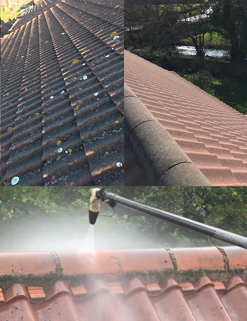 First we would remove all the moss from your roof, this would involve using specialist scrapers which are designed to specific roof tiles, and depending on how high the roof is then either the use of a roof ladder, scaffold tower or cherry picker, this enables us to work safely at height and will give us better access for all parts of the roof.